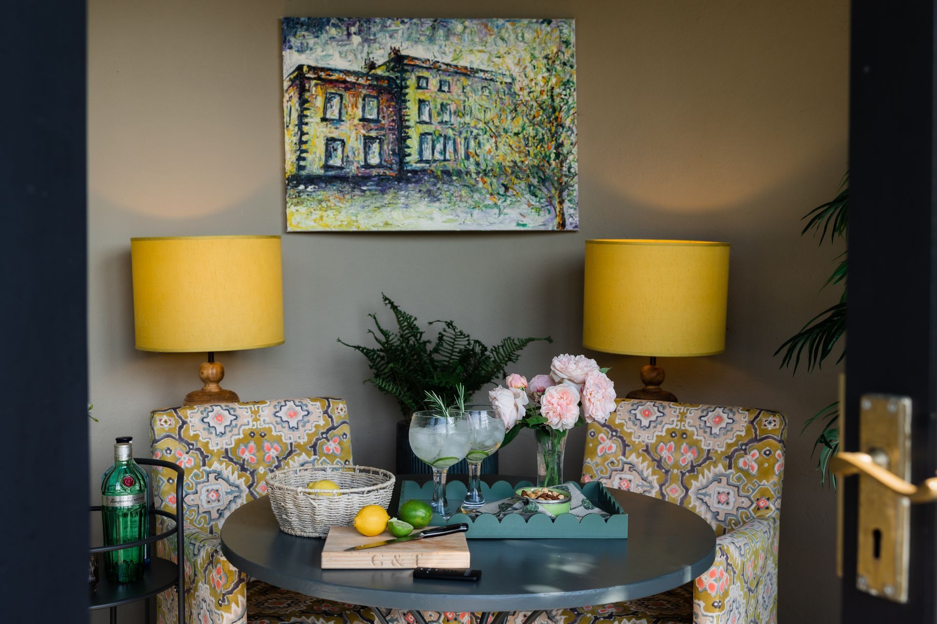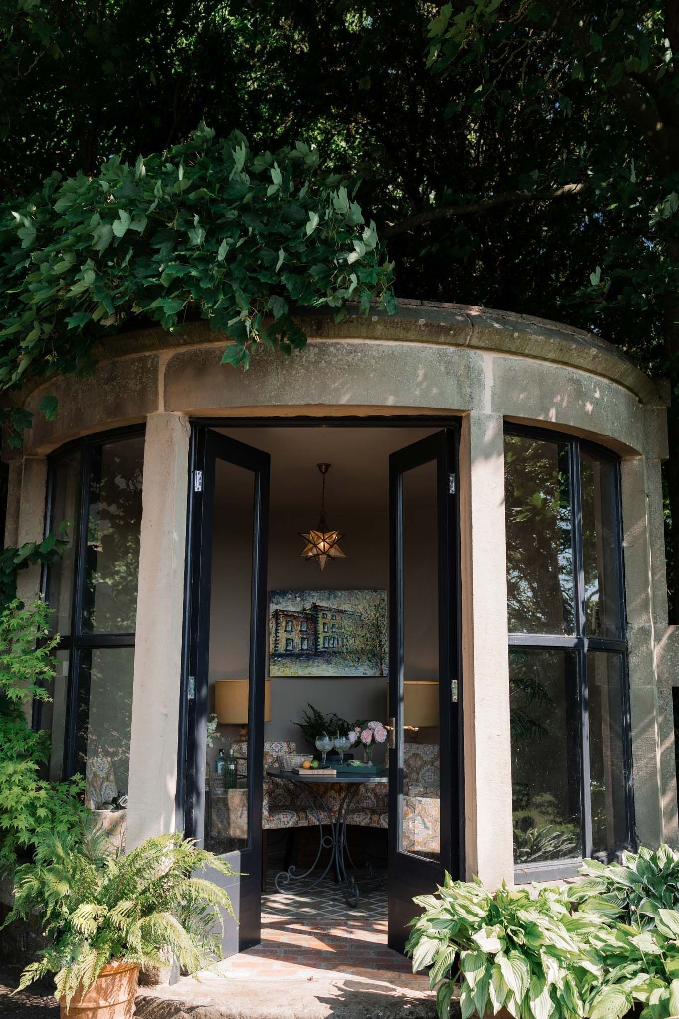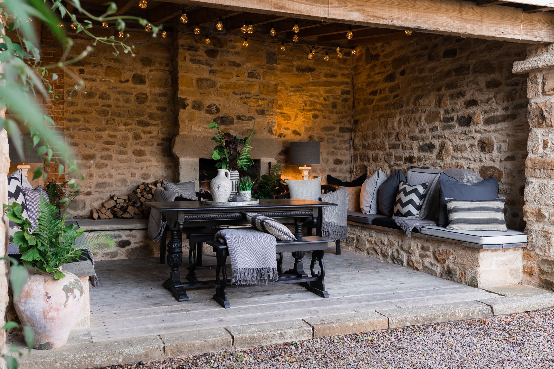 There are two garden rooms bordering this lawn. Firstly, the heated Summerhouse perched on a terrace surrounded by grasses and perfectly positioned to watch the sun setting over the Abbey. Secondly, The Hideaway, an open-fronted stone room with a log fire and dining and reclining seating.