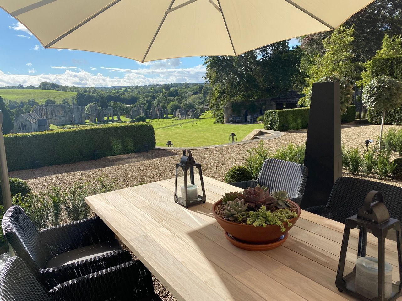 The abbey garden is so-called because of its magnificent aspect above the ancient ruins of Easby Abbey. Its sweeping ‘infinity’ lawn is separated from the fields by a ha-ha.