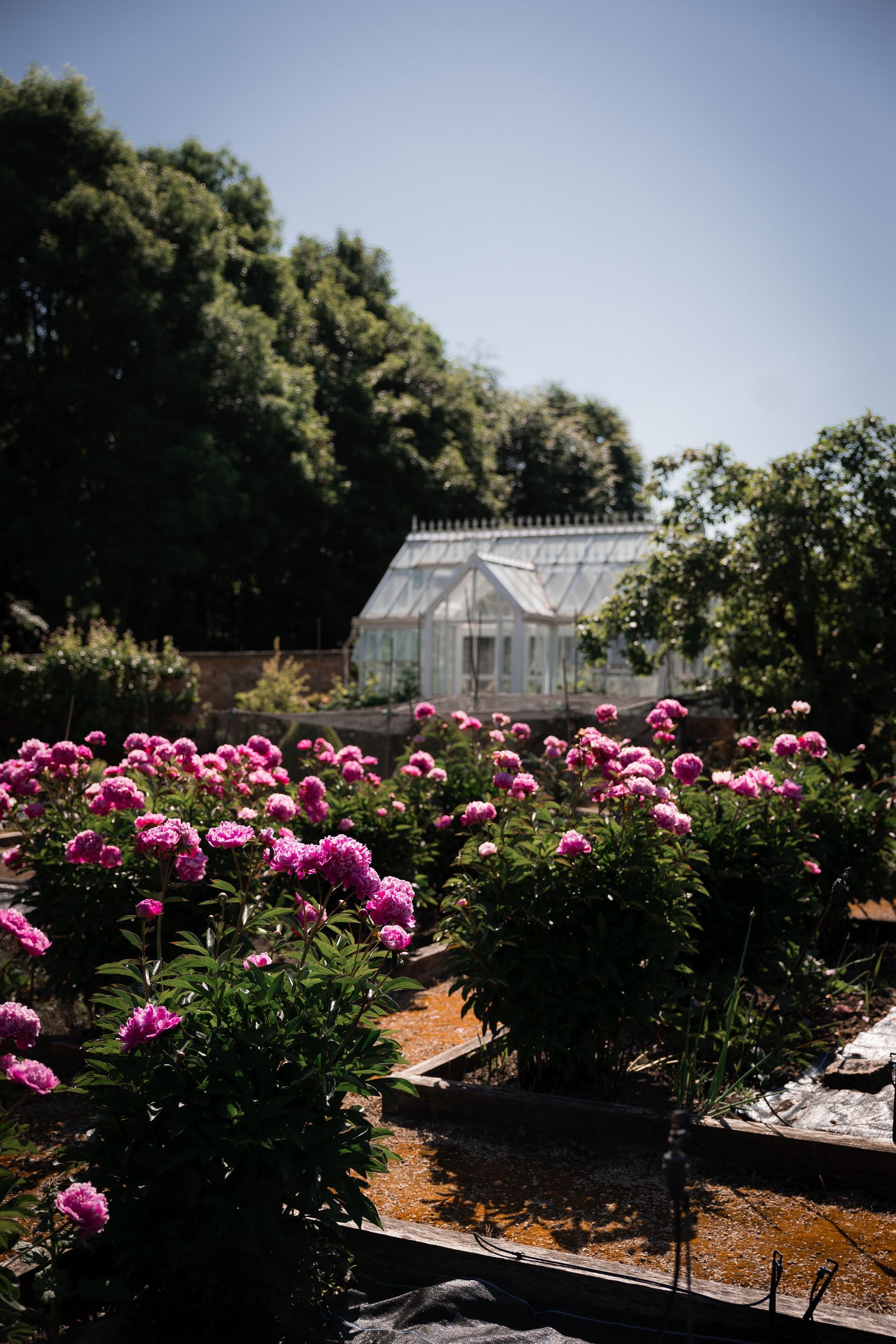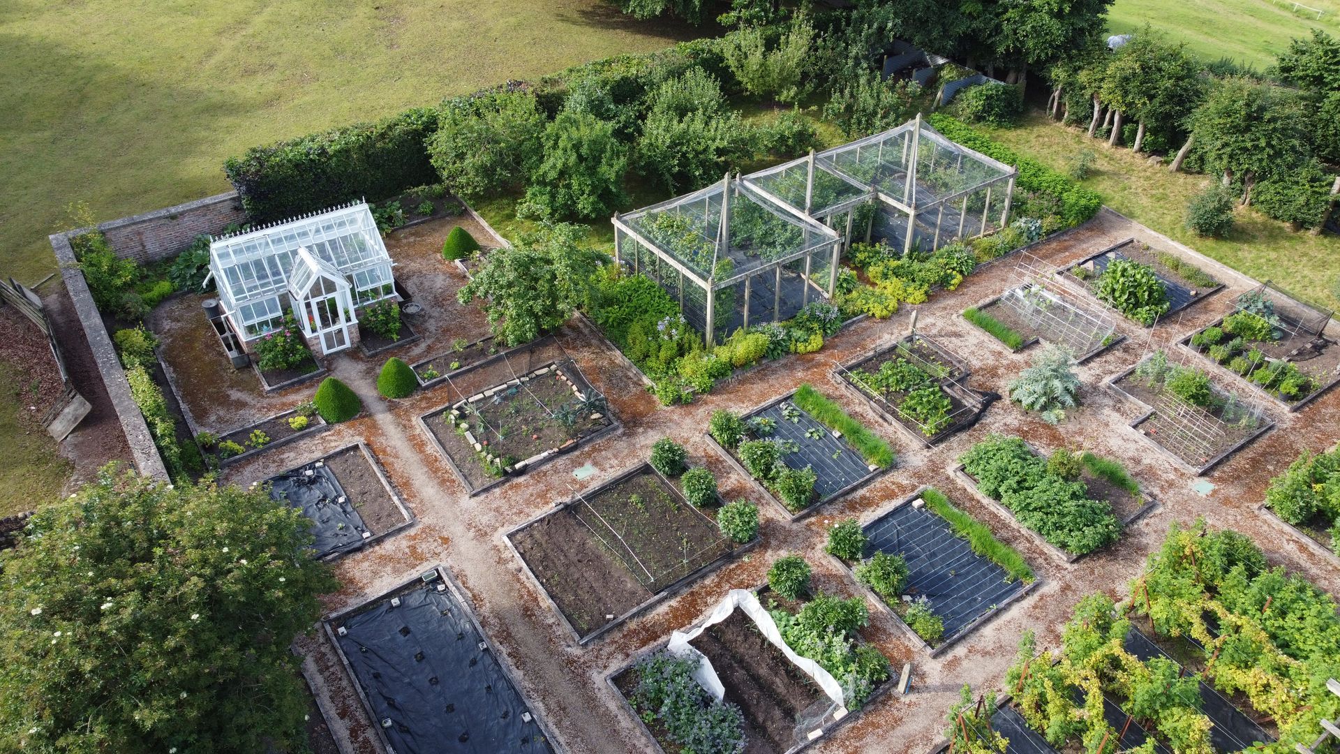 The soft fruit cages, orchard, rows of herbs and year round vegetables are grown with strict attention to natural, organic principles and companion planting.