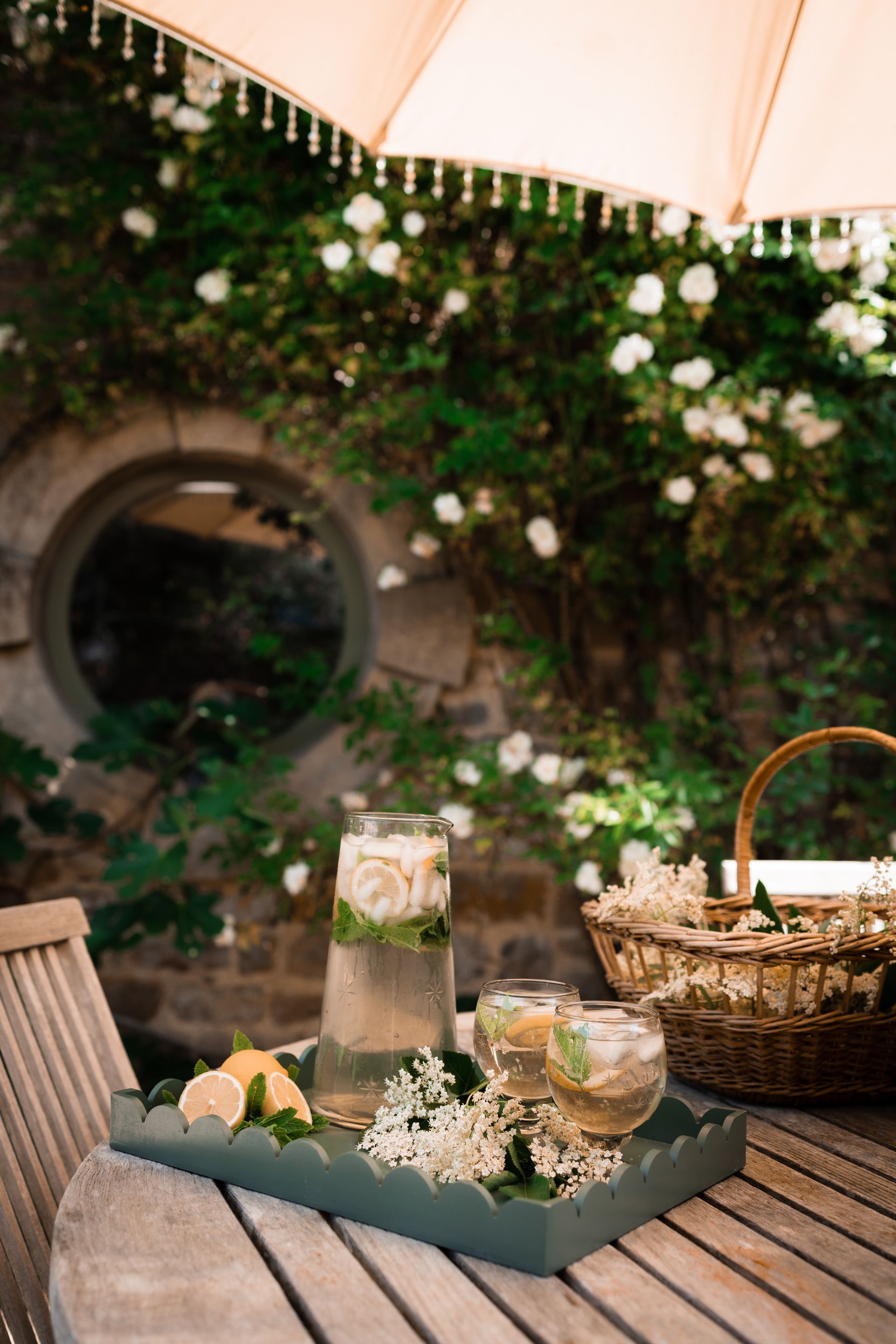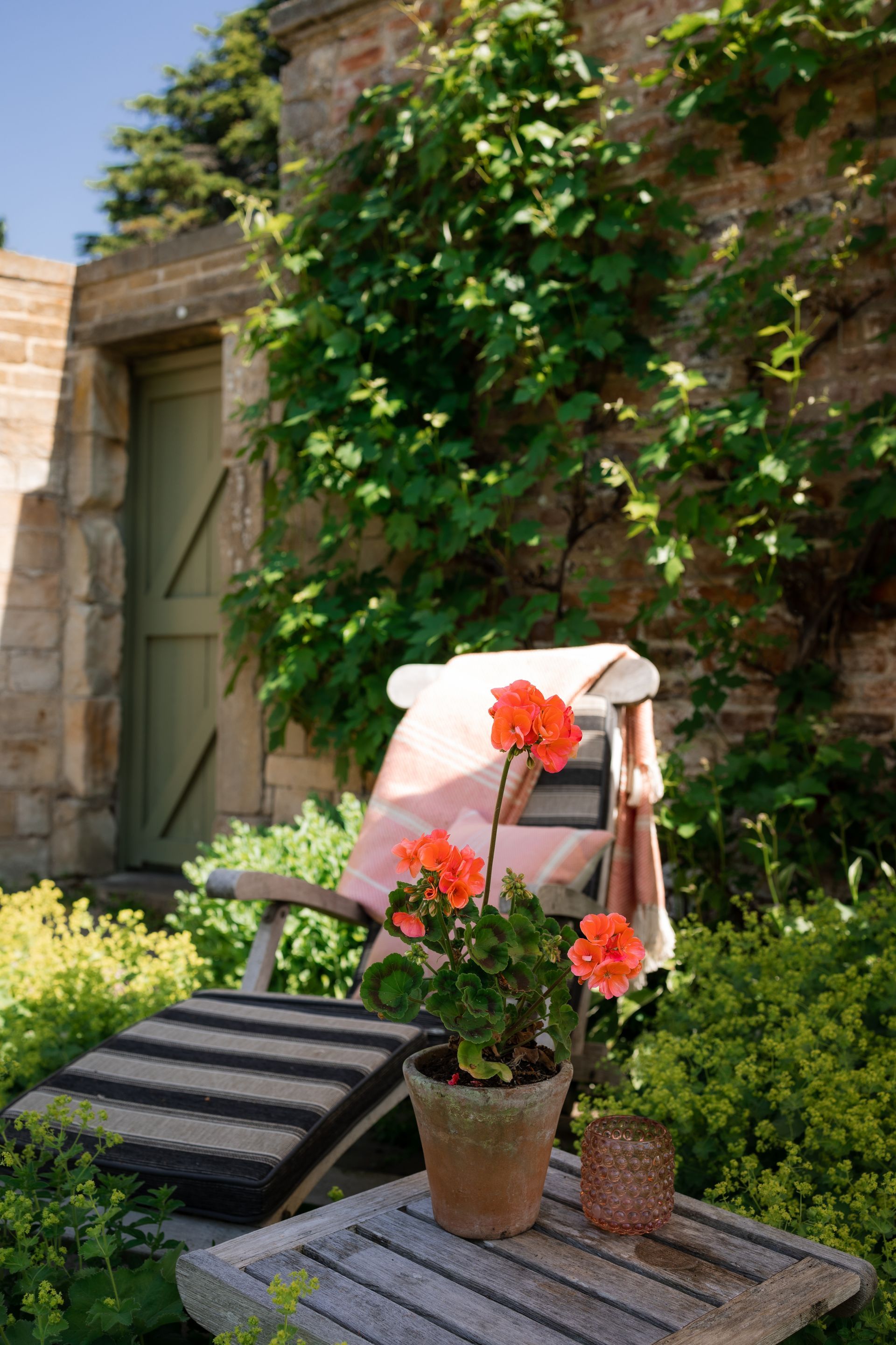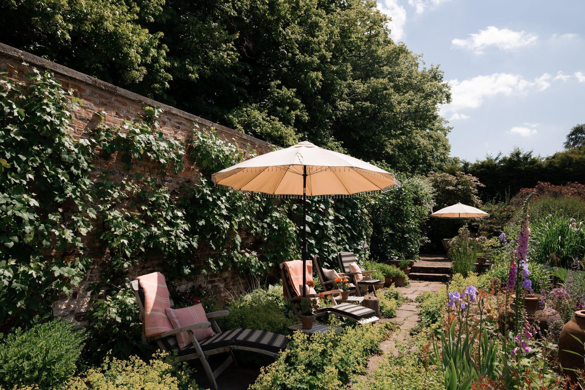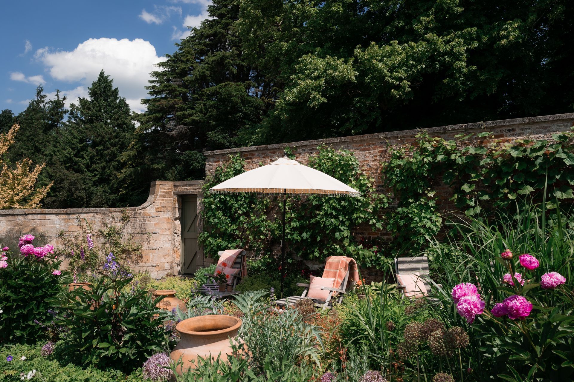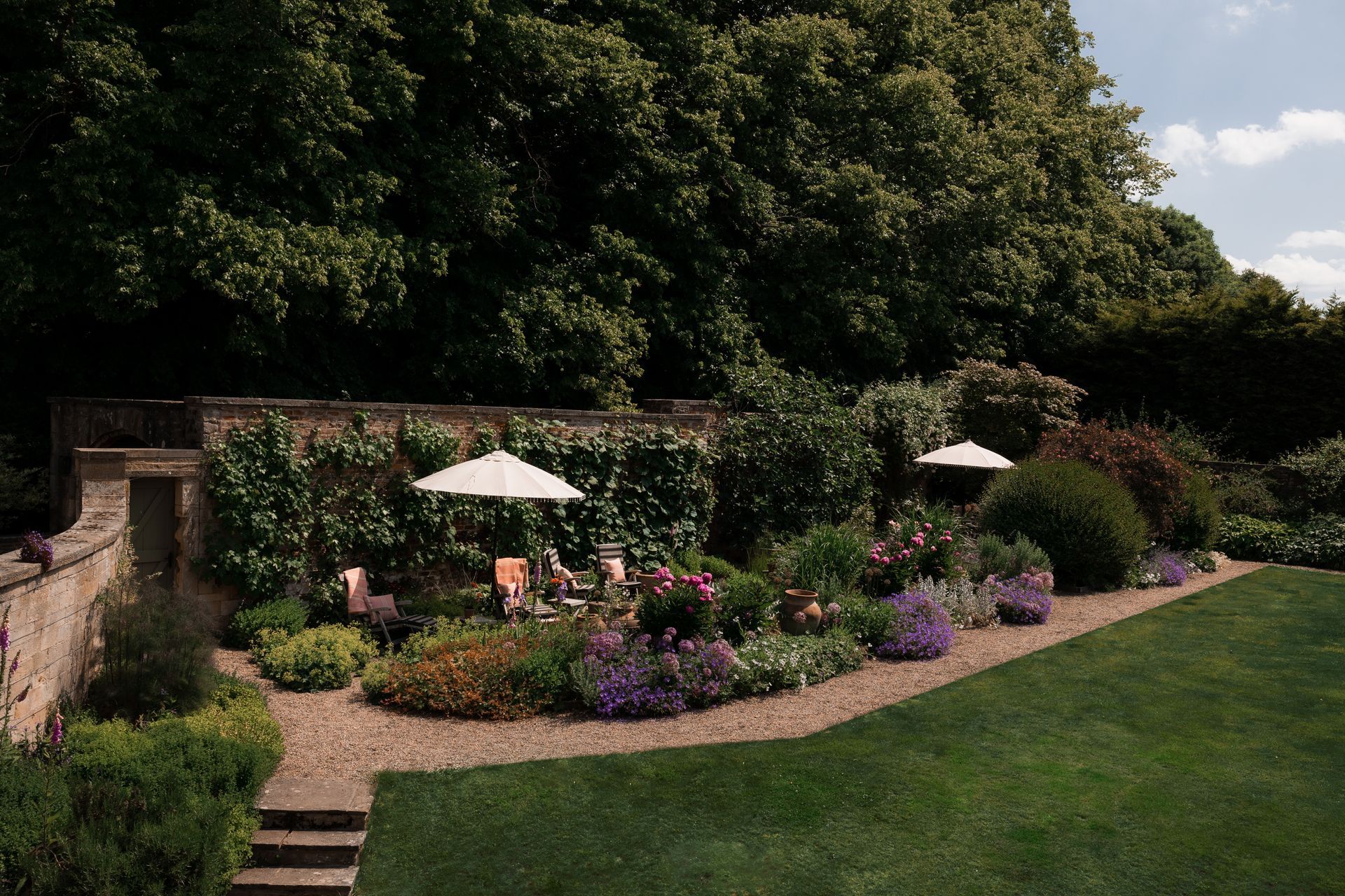 The walled garden is south facing with an extensive terrace secluded behind a deep herbacious border under a scramble of figs and scented roses.